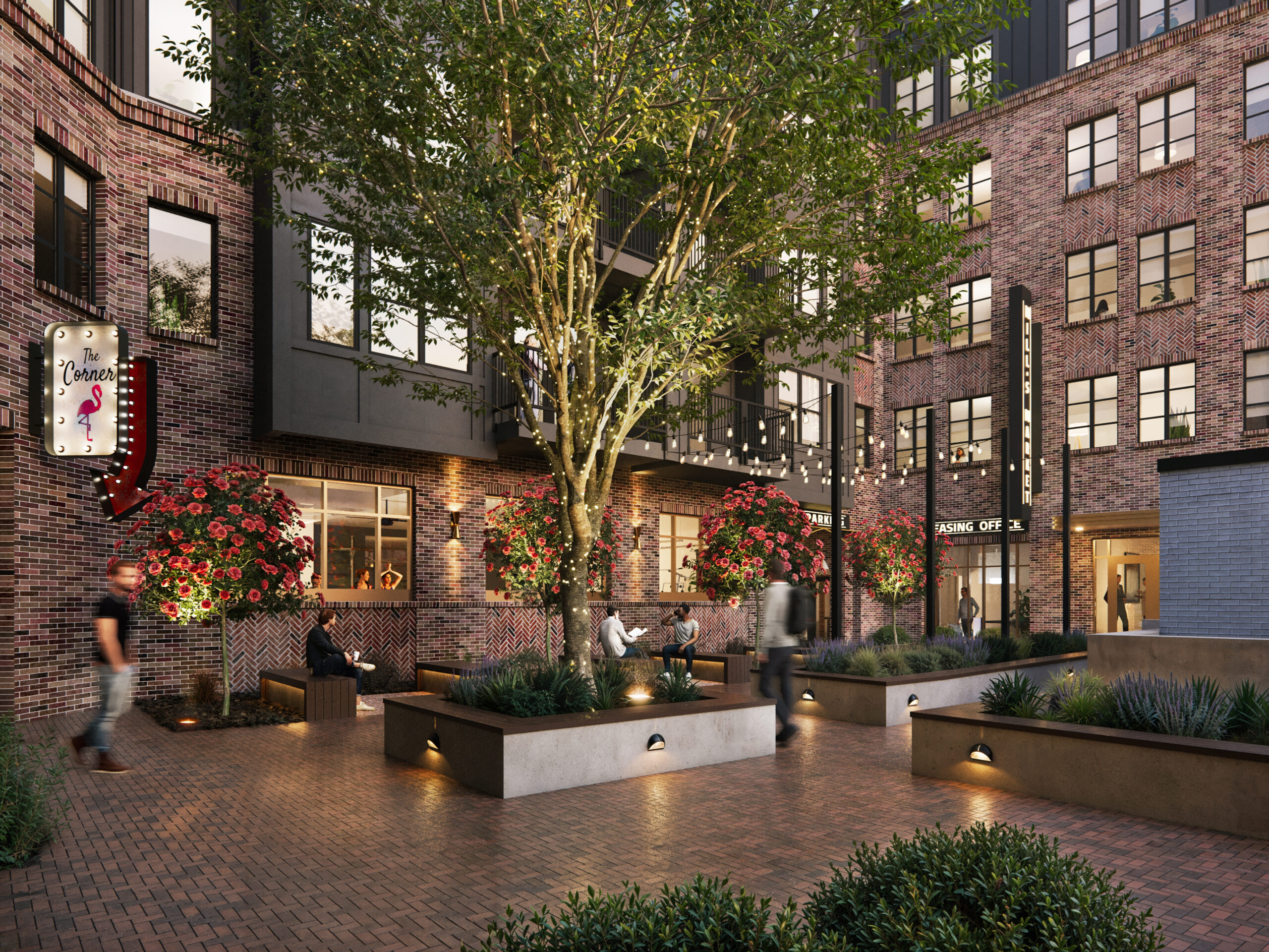 Mill’s Market’s 239 units will comprise a mix of studios, one-, and two-bedroom units in a single-building structure that stands five (5) stories tall. The Project will also contain 11,500 SF of commercial space fronting Catawba Ave., keeping in line with the commercial-nature of the corridor leading up to Lake Norman. Surrounding the commercial space will be a European-inspired alleyway with unique storefronts and outdoor seating. Mill’s Market will also provide stunning amenities including a 2 story club lounge, roof top terrace, pool court and outdoor kitchen, sauna, bike room and fitness center fronting the commercial courtyard.